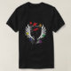 My 11 yo wore adult XL (5’7” 165#). The 8yo is small framed. She wore adult small and tied it in the back. Grandma wore adult large with long sleeve shirt underneath. Tall girl adult medium. Dark haired male adult large. Good quality dark Heather gray, Gildan brand shirt. -it was next up from basic choice and cost about $20 per shirt. Not too thick or thin. Washed and dried well, no major shrinkage. Not see-through. Can wear a bra under it fine. Screen print is just as shown and well done, front and back.