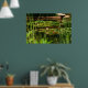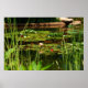 a serene scene with a pond and aquatic plants. done in a painterly style.