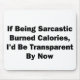 For the sarcasm lover in all of us. Check out this witty “If Being Sarcastic Burned Calories, I'd Be Transparent By Now” design on apparel, mugs, mousepads, buttons, and other unique gifts.