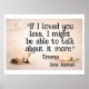 If I loved you less … Jane Austen quote Poster