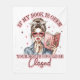 Charming illustration featuring a woman with her finger to her lips holding an open book. The colorful text reads: "If my book is open, your mouth should be closed ". This design is available on a wide variety of products.
