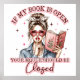 Charming illustration featuring a woman with her finger to her lips holding an open book. The colorful text reads: "If my book is open, your mouth should be closed ". This design is available on a wide variety of products.