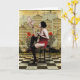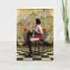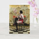 Flying pigglet fed by naughty lady in red - greeting card Contemporary vintage images integrated with textural interest and collage