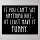 If You Can't Say Anything Nice, At Least Make It Funny. Humorous quote would make a great Christmas or birthday gift or present for someone who loves comedy, stand up comics, jokes, sarcasm and humor. Cool funny saying text design is perfect for anyone who loves snarky, sarcastic, sassy, and salty comedy and comedians.