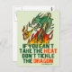If you can't take the heat, don't tickle the dragon. Funny saying parody instead of saying "get out of the kitchen". With a green dragon blowing fire flames. Fun humorous slogan design.