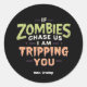 If Zombies Chase Us I’m Tripping You Funny Hallowe Classic Round Sticker