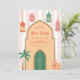An artisan Iftar invitation featuring my original hand-drawn Arabian house illustration, adorned with hanging lanterns, a palm tree, and charming pottery details.