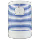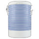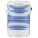 Igloo cooler is shown in the ten-gallon size with a blue striped print overall.
