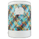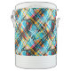 Igloo cooler is shown in the ten-gallon size with a colorful abstract print overall.