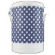 Igloo cooler is shown in the ten-gallon size with a patriotic stars blue and white print overall.