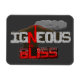 This geology humor flexible magnet features the pun "Igneous is Bliss," a geology spin on the common phrase "Ignorance is Bliss." The letters are drawn as grey rock and red, crystal-bearing magma mush below an active, erupting volcano.