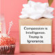 Compassion is Intelligence. Trump is Ignorance. Comic Conscious-Social-Commentary Splash-art sticker-design by Jeff Hankamer at Artjunkhaus
