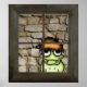 Cute little green monster with fangs looking out the window of his castle. Original digital cartoon art by Taylor Addams.