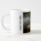 Change the text field to what you want. You can also change the font and its size and color by using the "Customize it" function, as well as add more text fields if you wish. See my store for more items with this photo.