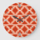 Ikat Aztec Pattern - Rust, Orange and white Large Clock
