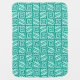 Classic Aztec tribal pattern baby blanket with a striated, Ikat woven texture - Light aquamarine / seafoam on a deep turquoise / peacock background