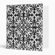 Digital reproduction of a damask medallion pattern with a striated, Ikat woven texture - White on a black background