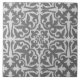 Digital reproduction of a damask medallion pattern with a striated, Ikat woven texture - medium grey / gray on a light silver grey background
