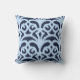 Ikat damask pattern - Midnight and light blue Throw Pillow