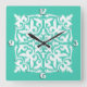 Digital reproduction of a damask medallion pattern with a striated, Ikat woven texture - creamy white on a peacock / turquoise / bright teal background