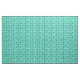 Intricate Moorish arch pattern with a striated, Ikat woven texture - soft aqua on a peacock / turquoise blue background