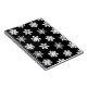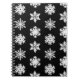 A delicate, lacy snowflake pattern on a solid background with a striated, Ikat woven texture - white snowflakes on a black background