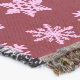 A delicate, lacy snowflake pattern on a solid background with a striated, Ikat woven texture - pale pink snowflakes on a deep burgundy wine / maroon background
