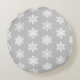 Ikat Snowflakes - Silver grey and white Round Pillow