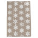A delicate, lacy snowflake pattern on a solid background with a striated, Ikat woven texture - white snowflakes on a deep taupe tan / stone ground