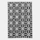 Kitchen towel in a stylized, four-point star pattern with a striated, Ikat woven texture - White pattern on a black background