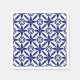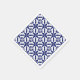 Digital reproduction of a stylized, four-point star pattern with a striated, Ikat woven texture - Navy blue / indigo pattern on a white background