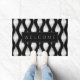 Ikat textile pattern custom welcome door mat. Add your own message, family name, monogram, surname or funny quote. Luxury gift idea for new home / housewarming or engagement / wedding party. Black and white or custom color background. Stylish modern typography with wavy line print. Personalizable doormat sign template. Create your own entry mat / rug for front door / entryway or hall / venue. Customizable home decor / decorations for your house. Add your own monogram letter initials or surname. Beautiful fashion design for modern home.