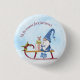 The words "I'll be gnome for Christmas" and a bearded gnome sitting on a decorated sleigh with Christmas gifts highlight these punny holiday buttons. Text is fully customizable.