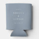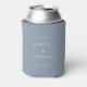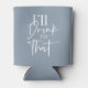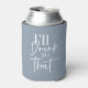 "I'll Drink To That" modern typography in white on dusty blue color background, personalized wedding favor can cooler.