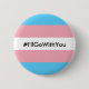 Join the #I'llGoWithYou campaign, and contribute to the safety of trans* and non binary people everywhere! This button has the #I'llGoWithYou hashtag, on a transgender flag.