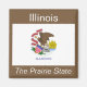 An authentic fine quality image of the flag of Illinois set between the state name and nickname over a flag-color background.