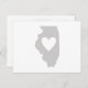 With the map shape of the Land of Lincoln state of Illinois and a gray background with a huge heart cut out of the middle this Illini postcard is great for anyone who really loves the Garden of the West state of Illinois.