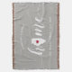 Show some home state pride with this cute rustic gray throw blanket featuring "home" in white calligraphy script lettering with a silhouette map of the state of Illinois standing in for the letter "O." A pink heart illustration inside the state map completes the design; you can change the position of the heart to your home city by opening the design tool and dragging the heart shape to your favorite spot. Personalize with your home city, family name and year established to create a perfect and memorable housewarming gift or addition to your new home.