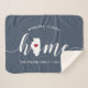 Show some home state pride with this cute rustic blue throw blanket featuring "home" in white calligraphy script lettering with a silhouette map of the state of Illinois standing in for the letter "O." A red heart illustration inside the state map completes the design; you can change the position of the heart to your home city by opening the design tool and dragging the heart shape to your favorite spot. Personalize with your home city, family name and year established to create a perfect and memorable housewarming gift or addition to your new home.