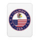Badge of Illinois with flag of Illinois and flag of USA colors, rounded shape.
