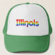 Trucker Hat with text sign " Illinois" in colors colors of the LGBT (lesbian, gay, bisexual, and transgender people) rainbow pride flag, rainbow love gay American state pride lgbtqiap+ design
