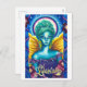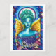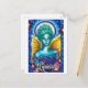 Uniquely artsy postcard perfect for making your greetings one of a kind! Postcard design of a vivid blue and green fairy with golden wings and glowing halo makes this a great card for fantasy enthusiasts. Postcard is blank on the back, with small Zazzle logo and artist's logo at the bottom.