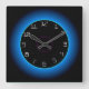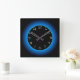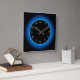 An Illuminated blue/aqua circle design with a black background.This artistic clock has white Luna numerals on the black center. A special arty design with atmospheric character. Note> This is not a led product.