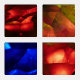 A set of 4 artistic photographs of quartz crystals in macro photography close up illuminated by multi color led.