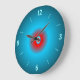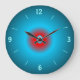A sea green and blue clock, an illuminated print design with a red centre .Available in Round shape only. Note: This is not a led product.Printed design only.