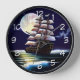 Pretty illuminated full moon with a sailing ship going by in the ocean waves. Ai art.
