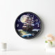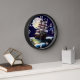 The size of the clock is dramatic and the abstract alcohol ink design is soothing and intricate at the same time. I chose the black frame that adds pop to the blue and gold design. The gold printing would be better in a slightly darker or larger font. I love it and I’m looking for just the right place in ny new apartment. I would recommend this clock for a personal gift or a present. I feel that the quality is excellent for the money! I’m a bit of a clock nut so I’m pretty particular about my purchases. The clock is larger in diameter than many if the clocks I have, so it stands out very well. I think a slightly darker printing color and a moderately larger size would best suit a professional decor or add more impact in a work place item.