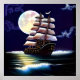 Illuminated Ship on the Ocean under the Moon Poster