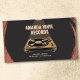 A vintage-style business card featuring a stylized turntable with a vinyl record spinning sits, with a single spotlight illuminating the turntable on a stained background. It could be employed by a music label, a used music store, a DJ or singer, a music event organizer, or any occupation in the music and audio trades.