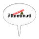Image of a green All Seeing Eye (Eye of Providence) like the one found on US currency dotting the "i" above the word 'Illuminati" in black text. The word 'Confirmed' in red text arranged to appear stamped across Illuminati.